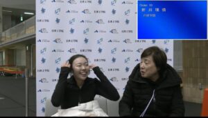 新井さんはBグループ13番目の滑走。自己ベストの更新を目指して、精一杯の演技をしました。結果的には目標には僅かに及びませんでしたが、転倒もなく最後まで新井さんらしい演技ができたと思います。