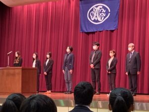 併せて、本年度でご退職の先生方の紹介・代表の先生の挨拶があり、生徒たちの感謝と送別の気持ちのこもった盛大な拍手が送られました。