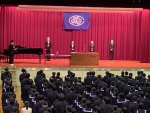 4月10日、体育館兼講堂にて、着任式・始業式を行いました。