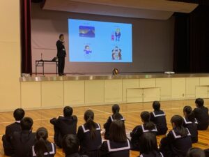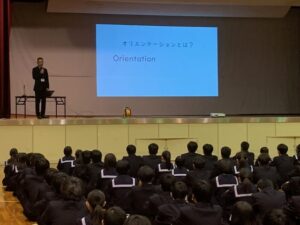 高校1年のオリエンテーションは、本日が最終日。締めくくりとして、体育館兼講堂にて、校長先生から講話をいただきました。高校生活への取り組みについて様々な視点から具体的な内容で話していただきました。特に、スマホの学習に与える影響については、考えさせられるものでした。これからの学校生活において、意識したり、実践できることを取り上げていただき、共感できいる様子がうかがえました。