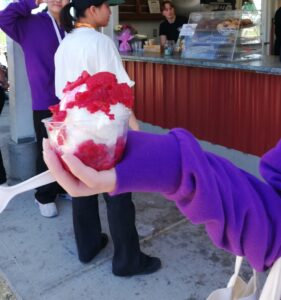 最後のアクティビティは、グランヴィルアイランドというマーケットやお店の集まる観光名所でのスカベンジャーハントでした。途中、お土産を買ったり軽食をとったりもしました。お店の人とのやり取りも手慣れたものです。