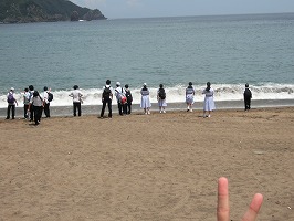 昼食の後、波打ち際で遊びました。靴を濡らすとバスに砂を持ち込むことになるので、ギリギリを楽しみました。