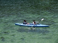 竹ケ島へ移動しました。お世話になるインストラクターの皆さんにご挨拶をして、楽しむための諸注意をしっかり聞き、海へと出ました。コントロールできずに浜辺にあがるものやまっすぐ進まず、遅れてしまう等、多少の問題はありましたが、船でのサポートもつけていただき、とても楽しんでいたと思います。