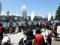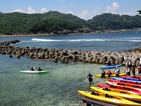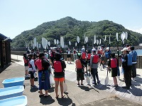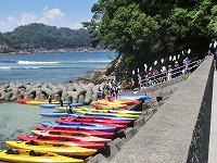 竹ケ島へ移動しました。お世話になるインストラクターの皆さんにご挨拶をして、楽しむための諸注意をしっかり聞き、海へと出ました。コントロールできずに浜辺にあがるものやまっすぐ進まず、遅れてしまう等、多少の問題はありましたが、船でのサポートもつけていただき、とても楽しんでいたと思います。