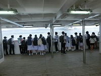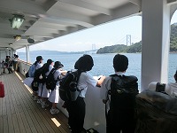 いよいよ、最終日です。鳴門大橋でのうずしおクルーズです。部屋の片づけに時間がかかり、ギリギリ予定の船に乗ることができました。大きな渦のすぐ近くまで船が進むのでちょっと心配になりましたが、みんな「すごいね、すごいね」と言っていました。帰りの道は順調で、芦屋には予定より早く到着することができました。みんなでこの宿泊学習を成功させることができたと思います。