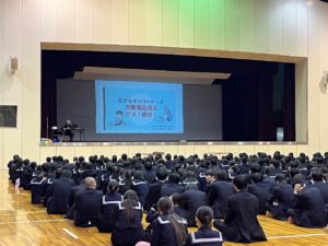 高校の方では「オーバードーズ」をテーマにお話いただきました。山田先生が強くお話されていたのは、「たとえ一度の乱用でも脳がダメージを受ければもう戻ることはない」ということと、「自分や自分のことを大切に思う人のこと、自分自身の夢を考えて、乱用に手を出さない、誰かに相談できる自分になろう」ということでした。最後の教頭先生からのお話で10代の市販薬の乱用が増えている現状を鑑み、断る勇気を持つことの大切さについて再確認できました。
