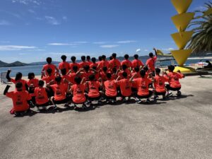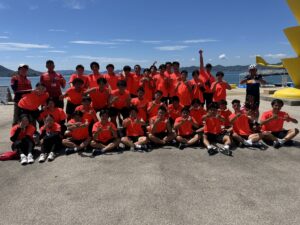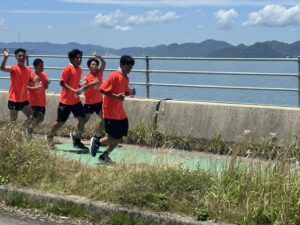 本日は、合宿のメインイベント、トライアスロンに挑戦してきます!!