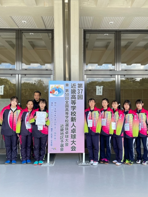 近畿高等学校新人卓球大会結果 全国選抜出場決定(女子卓球部)