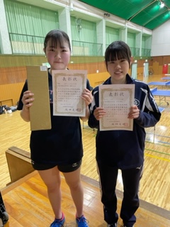 女子卓球部 県新人大会で優勝(団体・ダブルス)