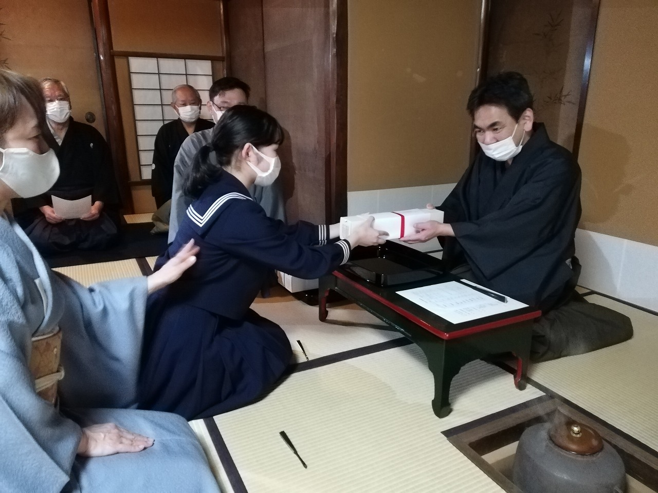茶道部 お家元一行書(掛け軸)引き渡し式