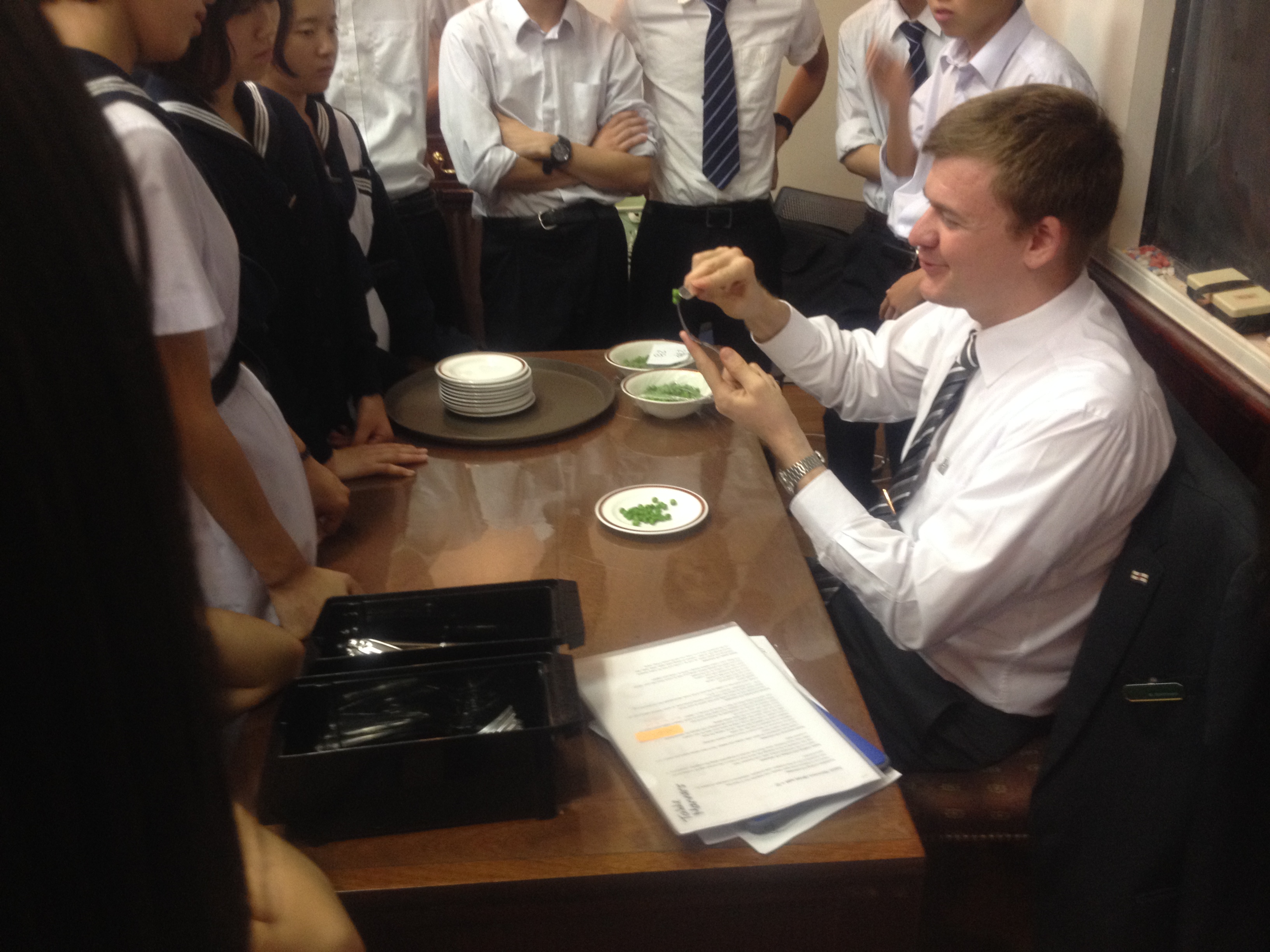 昨夜は、Table Manners の授業で、食器の並べ方やナイフ・フォークの使い方、マナー、Ladies first のことなどについて学び、その後コース料理をいただきました。少し緊張しながらも、とても美味しくいただきました。