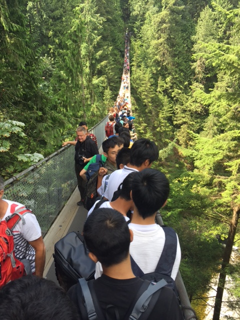 ホストが用意してくれたランチを食べて午後から、キャピラノの吊り橋体験と、エコロジーセンターに向かいました。橋の歴史や針葉植物について、当然ながら英語で説明があり、がんばってできるところまで理解しようと集中していました。