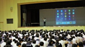 7月12日(金)、全校生徒が体育館に集まり、NIT情報技術推進ネットワークの篠原嘉一先生によるスマホ研修を受けました。LINEの乗っ取りや便利そう、楽しそうに見えるなアプリに潜む怖さを具体的に教えていただき、ある時はどよめき、ある時は深くうなづきうなずき、あっという間の研修でした。避けては通れぬネットとの付き合い方を今までとは違った角度から勉強しました。ありがとうございました。