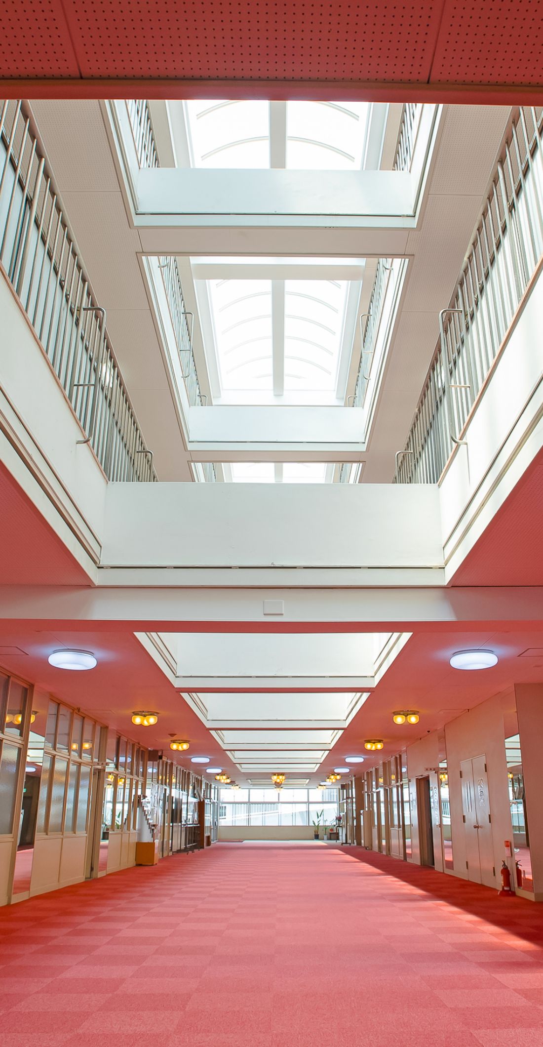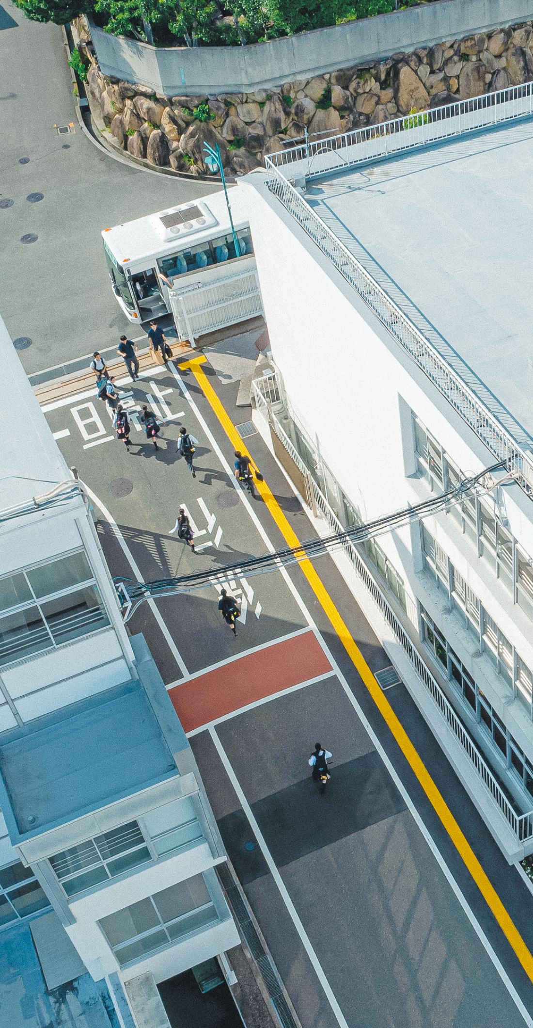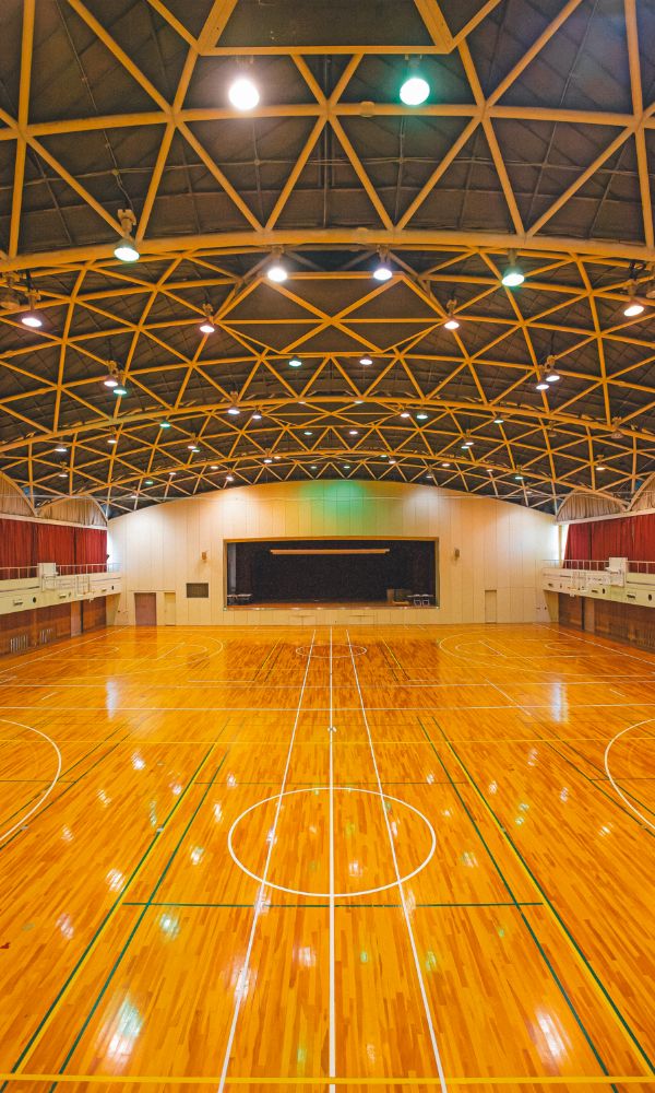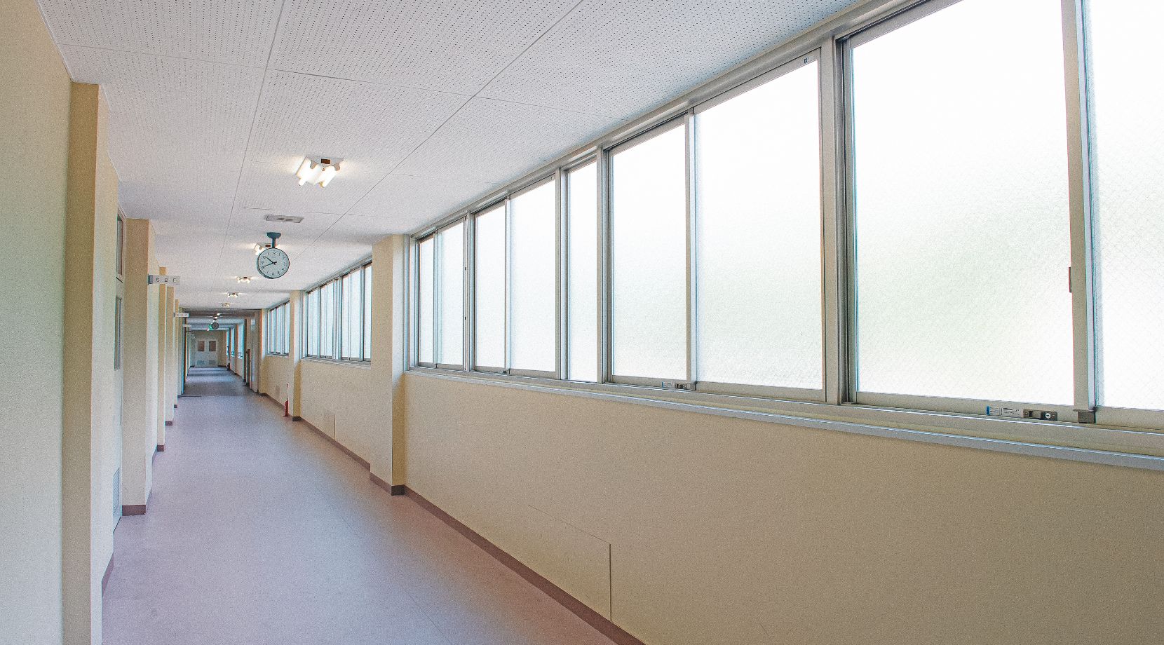 TOPスクールライフ施設紹介 施設紹介 緑と笑顔あふれる 白いキャンパス Facility Movie PLAY 音楽ホール 中央ロビー 第1体育館 テニスコート 多目的教室 憩いの広場 ランチルーム 図書室 スクールライフ 制服紹介 年間行事 アシハピ